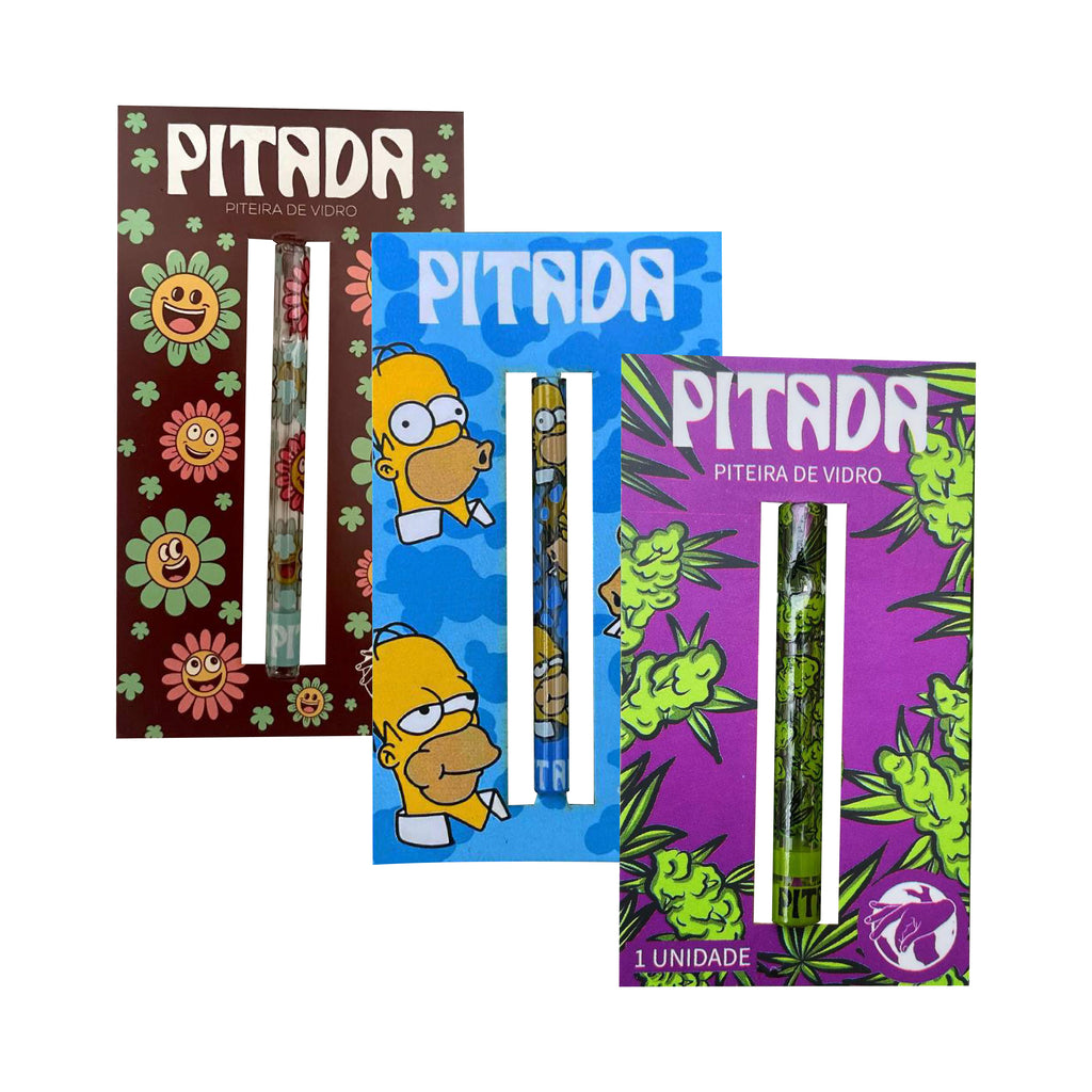 O kit contém 3 piteiras de vidro, cada uma estampada com personagens icônicos e designs exclusivos: