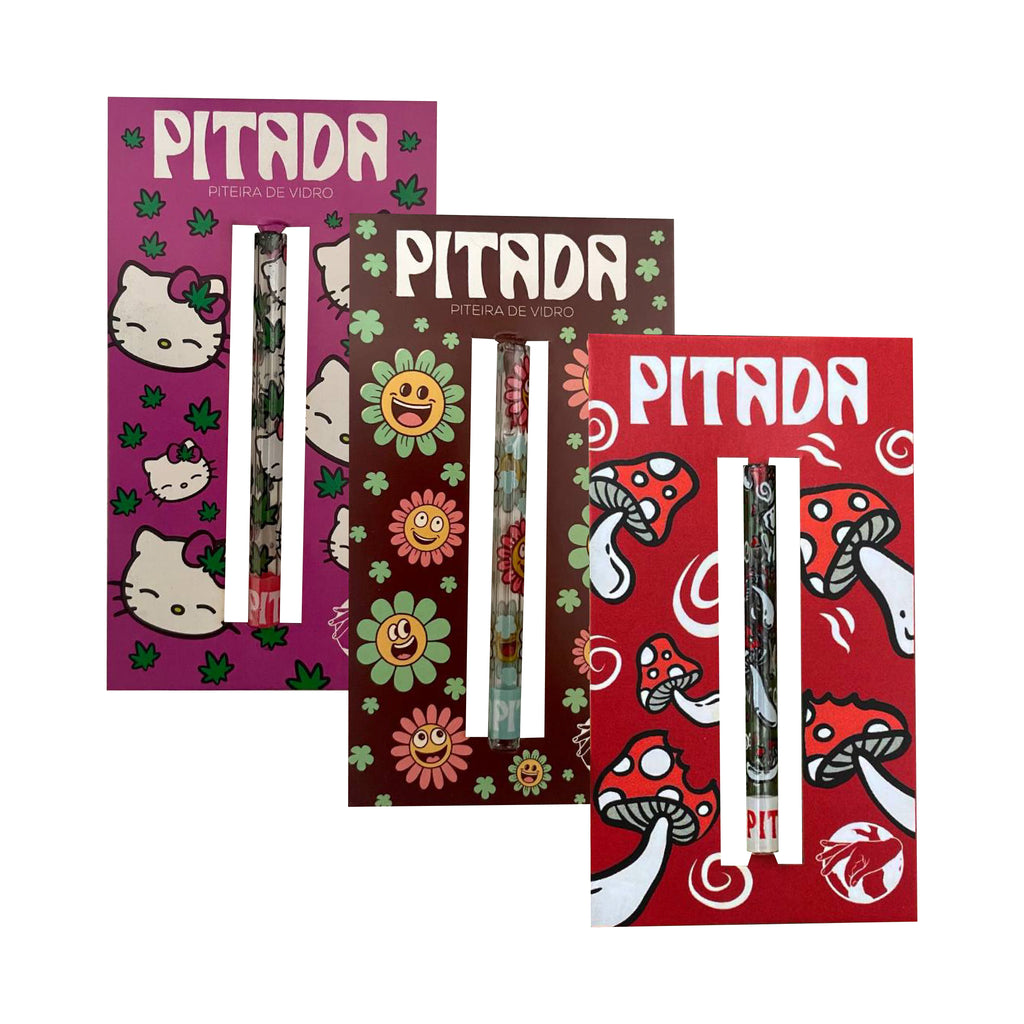 O kit contém 3 piteiras de vidro, cada uma estampada com personagens icônicos e designs exclusivos: